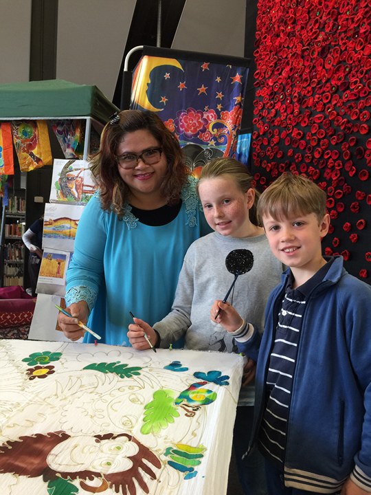 There was a special colourful setup that can be seen by everyone as soon as they walked in the library entrance. Pictures taken from story books for children were created into a batik form that children can colour it themselves. This activities attracted a lot of interest from children to interact. A joyful family day out was enjoyed by those who joined in the activity with Write Around the Murray (WAM).